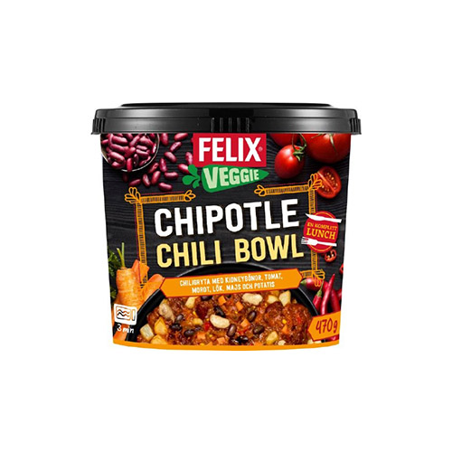 Svarta, röda och vita kidneybönor (23 %), vatten, tomatpuré, morot, tomat, majs, stekt potatis (potatis, rapsolja), olivolja, lök, röd paprika, champinjoner, persilja, SOJASÅS (vatten, SOJA, majs, salt), grönsaksbuljong (havssalt, rismjöl, socker, lök, morot, pumpa, gurkmeja, solrosolja, libbsticka, vitlök, fänkål, champinjon, shiitake), salt, majsstärkelse, socker, chipotlepaste (chipotle chili, lök, tomatpuré, ättika, vitlök, salt, koriander), vitlök, guajillo chili, kryddor (bl.a. rökt paprikapulver, spiskummin), naturlig arom.
