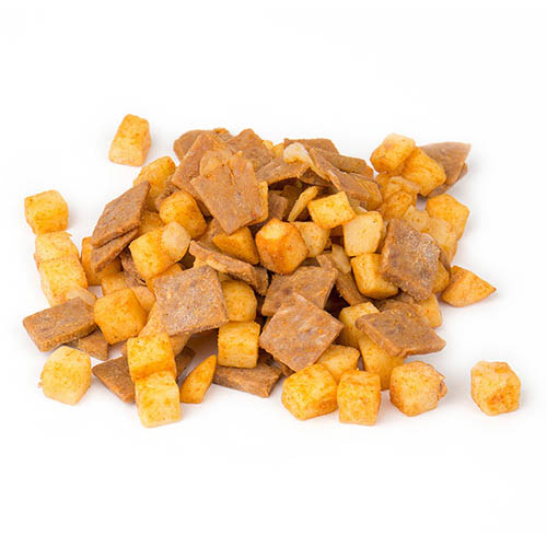 Potatis (rapsolja, druvsocker, salt), nötkött* (16%), lök, vatten, potatismjöl, kryddor (bl.a. paprika, chili, cayennepeppar, spiskummin, vitlök), salt, stärkelse, stabiliseringsmedel E450. *Ursprung: SE.